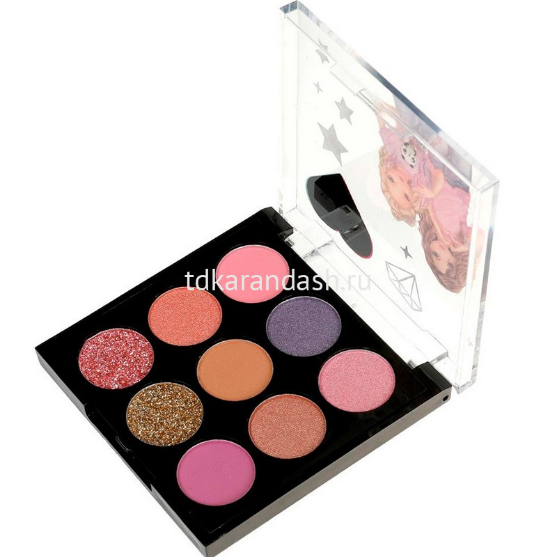 - палетка теней из 9-ти оттенков: розовый (3), сиреневый, персиковый, бежевый (2), фиолетовый, золотой
