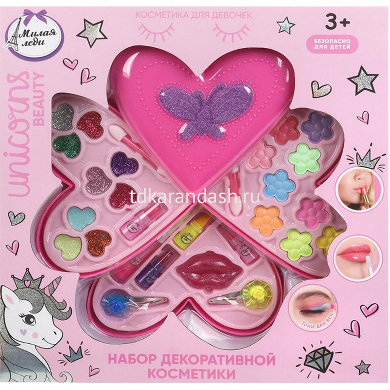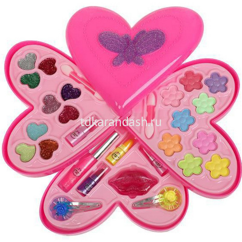 Девочки в любом возрасте хотят быть красивыми. Специально для юных модниц был разработан этот набор, состоящий из теней для век, помады, блеска для губ и стильных аксессуаров для волос в красивом футляре.