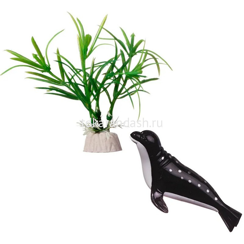 Не только хвост привлекает внимание - красивая блузка с оборками добавляет очарование и характер Эмили. Однако это не конец изюминок в этом наборе. В дополнение к кукле русалки Эмили, вы также найдете очаровательного черного тюленя с серебряными точками (10х4,5х5,5см) и морским растением, что обогащает мир подводных приключений.