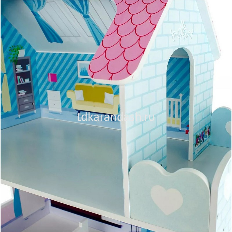На стенках всего дома напечатан внутренний интерьер дома, мебель идет в комплекте.
