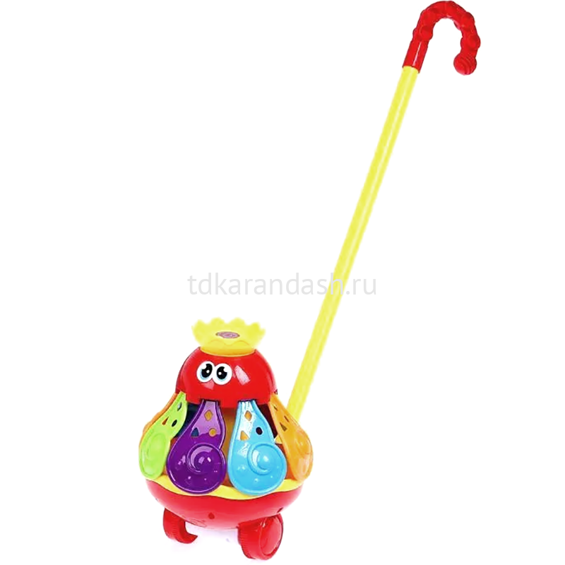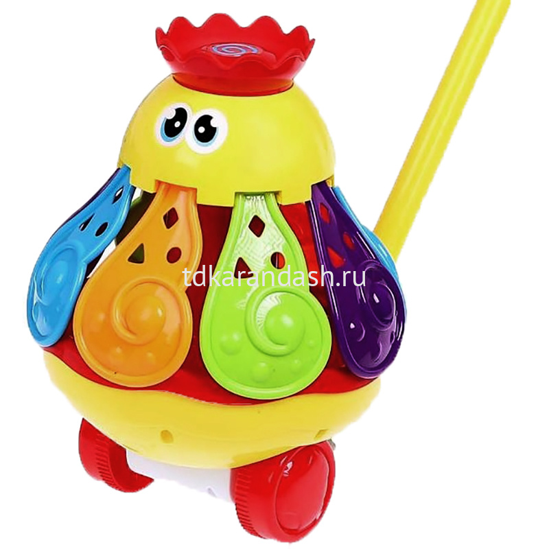 Ребёнок сможет исследовать мир вокруг, укрепляя моторики и тактильные навыки. Пластмассовые элементы конструкции способствуют такому процессу развития, а интерактивная музыкальная функция добавляет элемент сюрприза в каждую игру. Катание на колёсах возможно благодаря удобной палке, которая служит рулём для уверенного управления игрушечным транспортом.