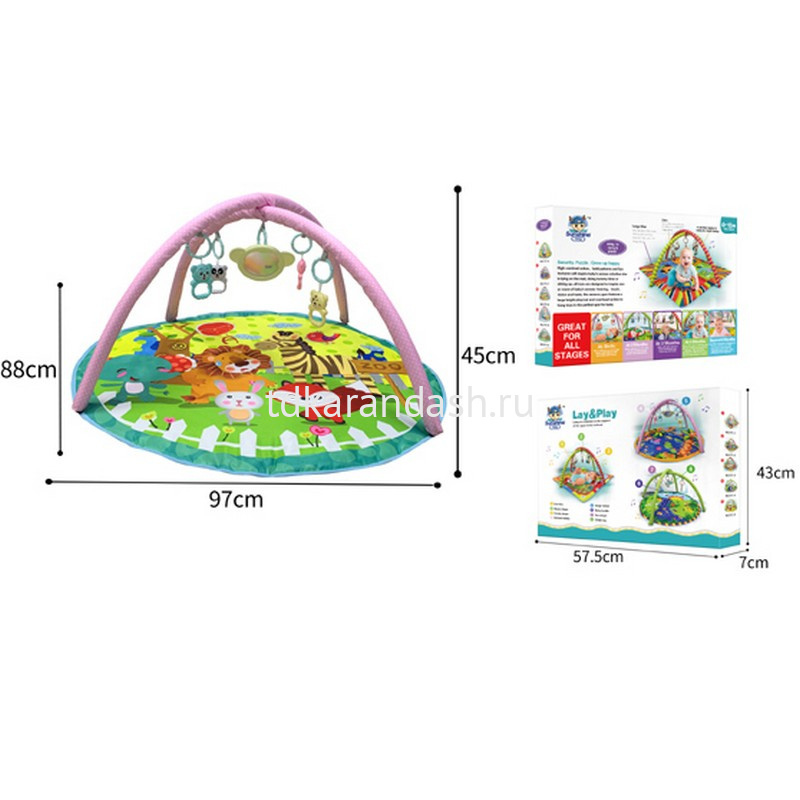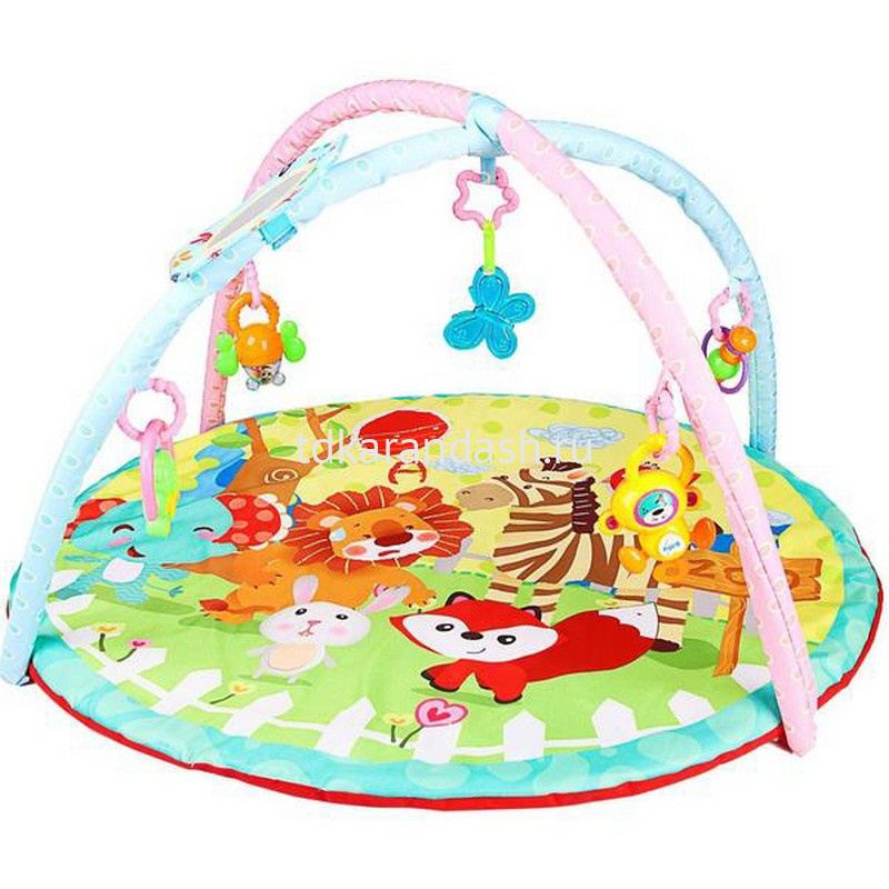 Развивающий коврик "Веселые животные" с дугами отличается мягкой поверхностью и красочной расцветкой. Младенца, лежащего много времени на спине, необходимо переворачивать на живот для укрепления мышц шеи и спины. Яркий коврик а также подвесные игрушки привлекут внимание ребёнка, стимулируют его поднимать голову и играть, лежа на животе.
