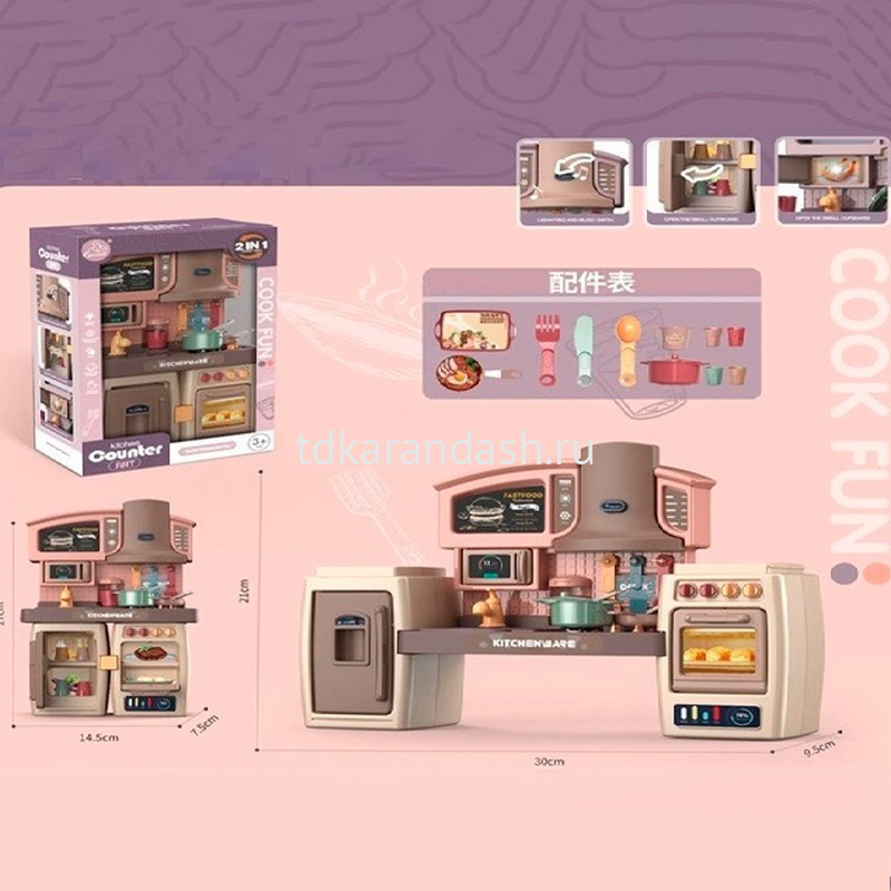 Ваши дети смогут погрузиться в атмосферу настоящей кухни благодаря звуковым эффектам. Плита с функциональной вытяжкой добавит реалистичности процессу готовки, а микроволновка станет незаменимым помощником в приготовлении волшебных блюд! И это ещё не всё — холодильник позволит уютно хранить "продукты". Все элементы тщательно продуманы, чтобы порадовать детей разных возрастов и создать простор для воображения. Эта игрушечная кухня подарит море радости малышам. Она занимает почетное место среди других игр благодаря своей продуманности и функциональности.