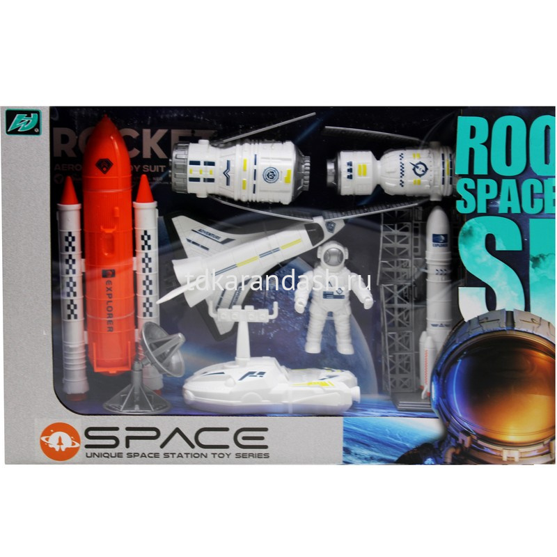 В набор входит: - 1 зонд; - 1 фигурка астронавта; - 1 самолет; - 2 спутника; - 2 ракеты; - 1 антенна.