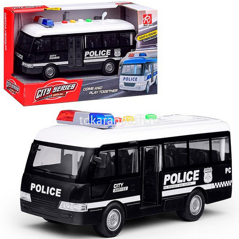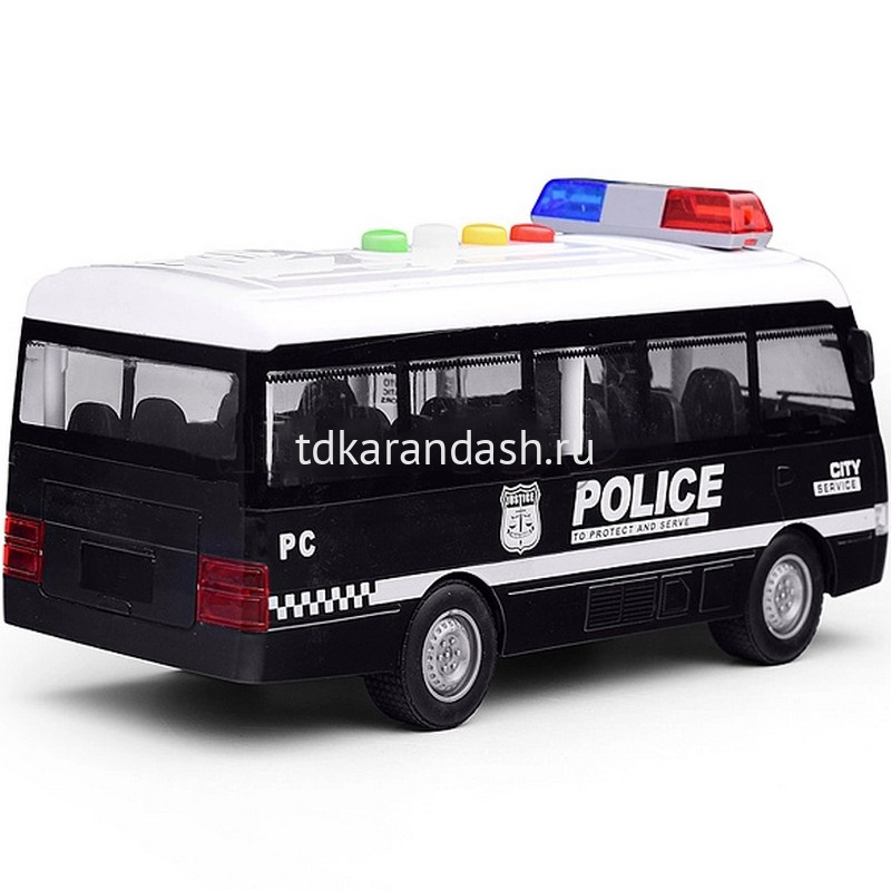 Вытащите защитный язычок из отсека с батарейками. Приведите инерционную игрушку в движение, немного оттянув ее назад и опустив. Открывайте и закрывайте двери автобуса. Придумывайте различные сюжеты. Нажимайте кнопки на крыше машинки для звукового сопровождения, а также наслаждайтесь световым эффектом. Детализированный полицейский автобус способствуют расширению кругозора и развитию зрительно-моторной координации движений, фантазии, эмоционального интеллекта.