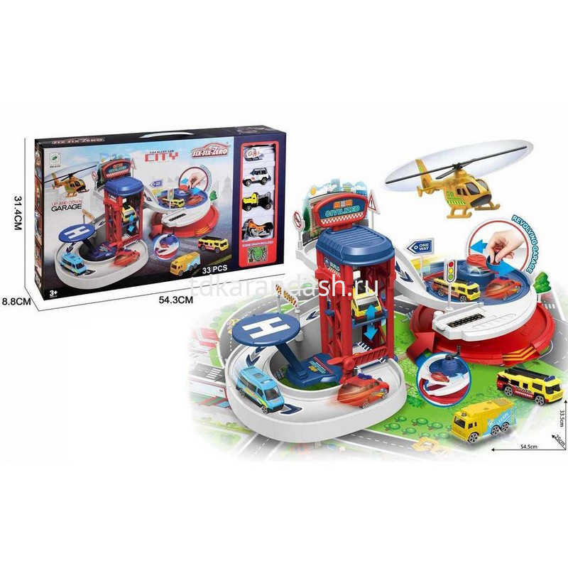 Парковка состоит из крутого спуска и лифта. Парковка собирается из 33 деталей. Малыш сможет устраивать настоящую базу ремонтников автомобилей.
