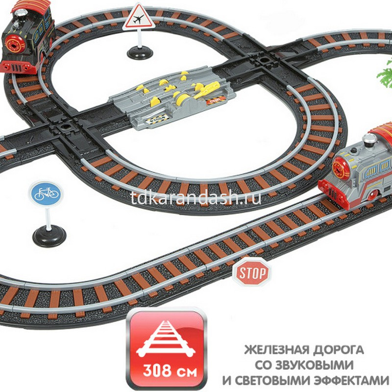 Питание паровоза осуществляется двумя батарейками АА не входят в комплект. Длина пути 308 см.