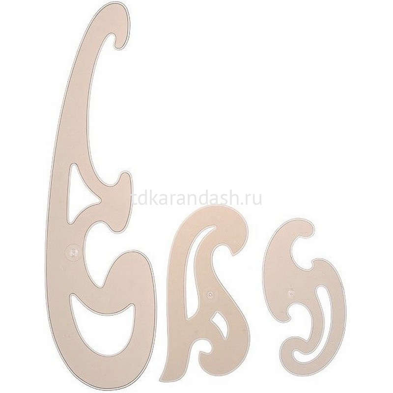 Набор лекал Koh-i-Noor включает в себя три лекала К13, К23 и К33. Они выполнены из прозрачного пластика коричневого цвета.