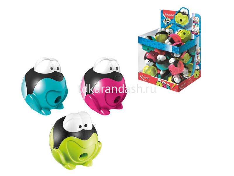 - Пластиковая точилка-лягушка с запатентованной интерактивной системой: глазки открываются, когда карандаш заточен.