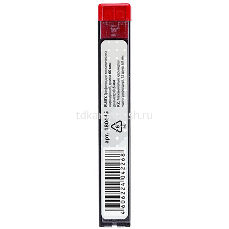 Изготовлены из высококачественных полимерных материалов, обеспечивающих мягкое письмо. Устойчивы к излому. Обладают средней степенью твердости – HB. Длина грифеля составляет 60 мм, а его диаметр - 0,5 мм. 12 штук в упаковке. Поставляются в пластиковом пенале.