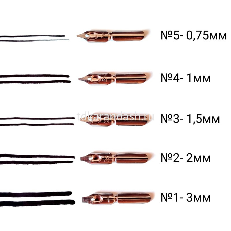 Каллиграфические перья: №1 - 3 мм, №2 - 2 мм, №3 -1,5 мм, №4 - 1 мм, №5 -0,75 мм.