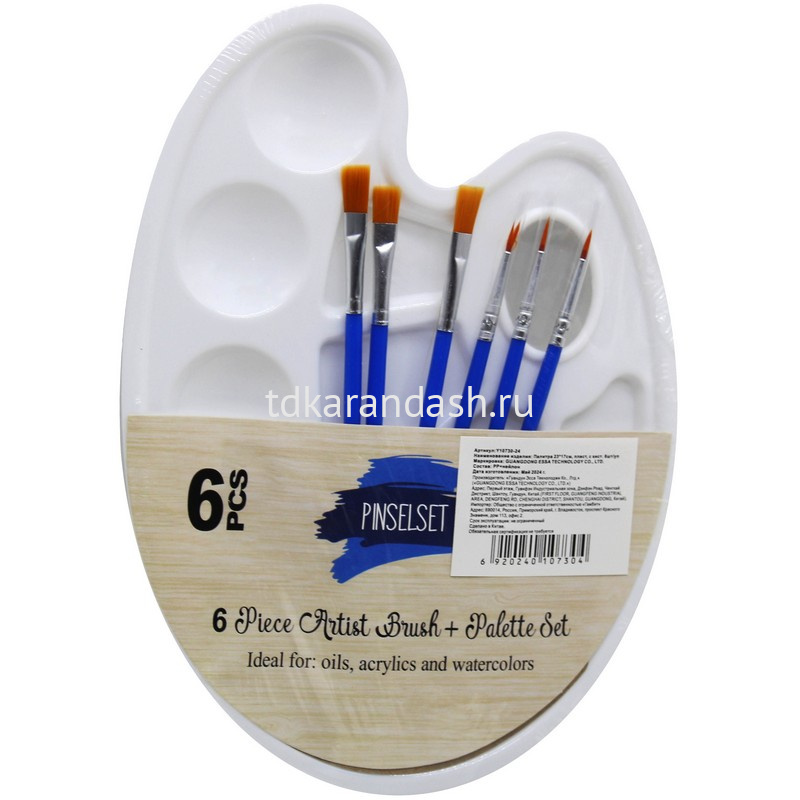 Легкая, удобная пластиковая палитра для рисования необходимый инструмент для юных художников – служит для смешивания красок и для получения новых тонов. Легко моется, имеет много отделений для смешивания, благодаря овальному вырезу удобно держится в руке. Палитра изготовлена из пластика, многоразового и прочного. В комплекте с палитрой идет набор из 6 кисточек для рисования. Подходят для рисования гуашью, акварельными красками. Набор содержит все необходимые для рисования размеры кисточек: от точных и тонких линий до заливки фона! Хорошо ложатся в детские руки. 6 художественных кистей и 1 палитра для рисования.
