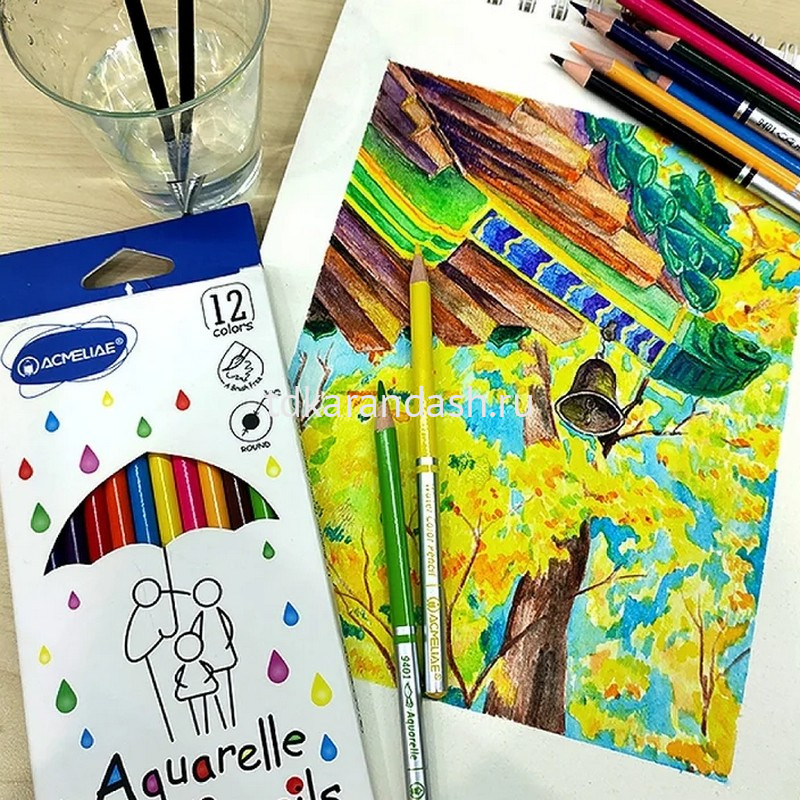 Мягкий грифель легко ложится на бумагу. Яркие красивые цвета хорошо смешиваются и размываются водой, создавая реалистичный эффект акварели.