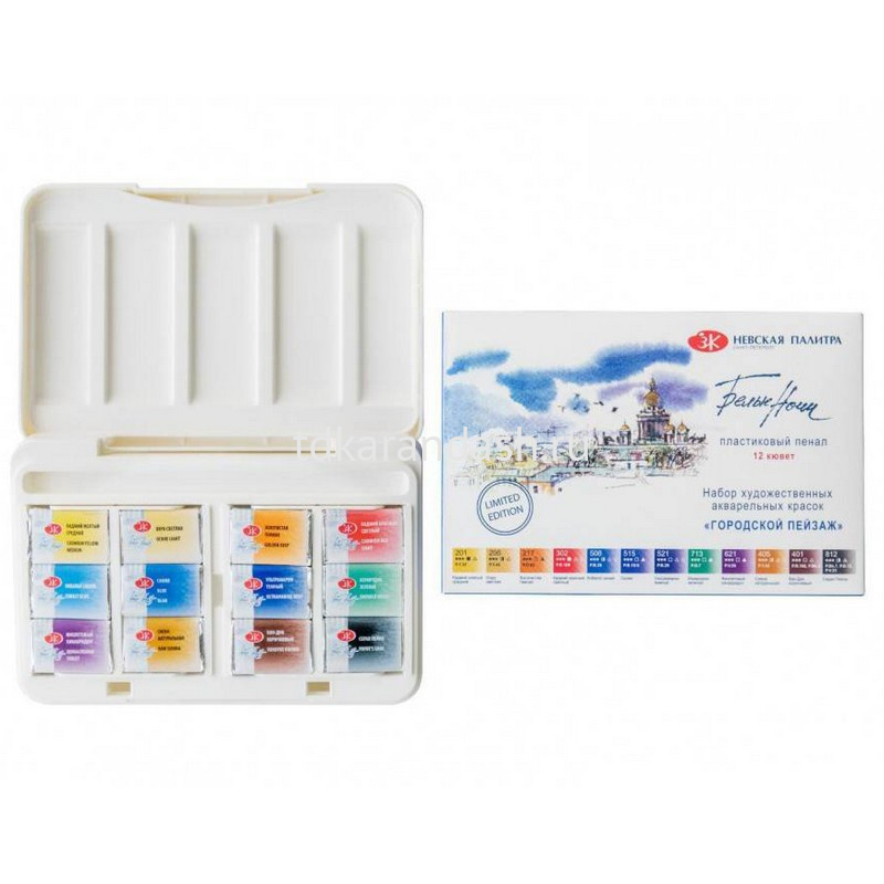 Тематический набор профессиональной акварели "Городской пейзаж" разработан для создания пейзажей городской среды и архитектурных скетчей.