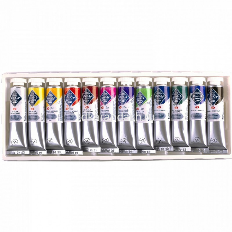 Темпера "Мастер-Класс" позволяет получить многообразие благородных оттенков в разбелах и смесях. Краски легко наносятся на бумагу, картон, дерево, керамику, грунтованный и негрунтованный холст. При высыхании образуют эластичную, непрозрачную, несмываемую пленку.