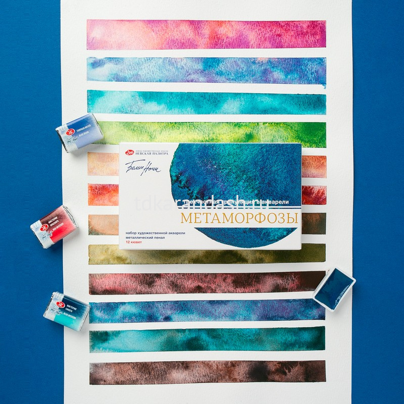Профессиональные художественные акварельные краски "Белые ночи" представляют собой тонкодисперсные суспензии пигментов и наполнителей в связующем, в состав, которого входит водный раствор растительного клея – гуммиарабика.