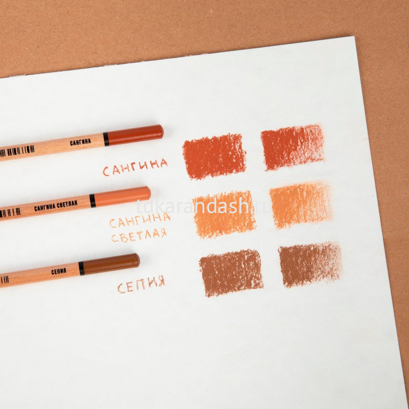 Состав: Сангина - 2шт. , Сангина светлая - 2шт., Сепия - 2шт.