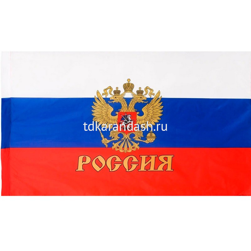 Флаг страны — самый популярный атрибут на различных мероприятиях. Ни один митинг, спортивное соревнование, игра или выборы не проходят без него, ведь это удобный, привычный и в тоже время информативный государственный символ. Изготовлен из лучшего материала, яркость и износостойкость гарантируется производителем. Также такой флаг отлично подойдет, как достойный атрибут к празднику великой победы - 9 мая! Флаг России "С гербом", материал-искусственный шёлк, размер 90х145см.