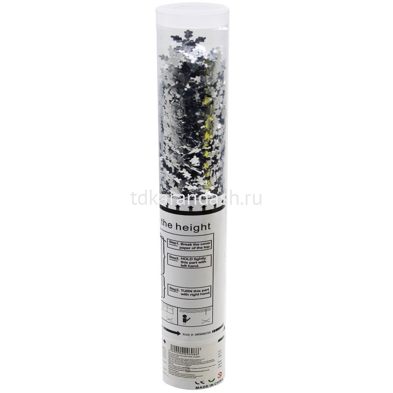 Пружинная хлопушка, в виде серебристых снежинок размером 3см, сделает любое событие ярким и станет эффектным завершением вашего праздника! Поверните специально обозначенную часть, и она выстрелит! Такой фейерверк можно безопасно утроить дома и на улице — это вовсе не пиротехника. Будьте уверены: ваши поздравления будут услышаны! Компактную хлопушку можно взять с собой куда угодно!