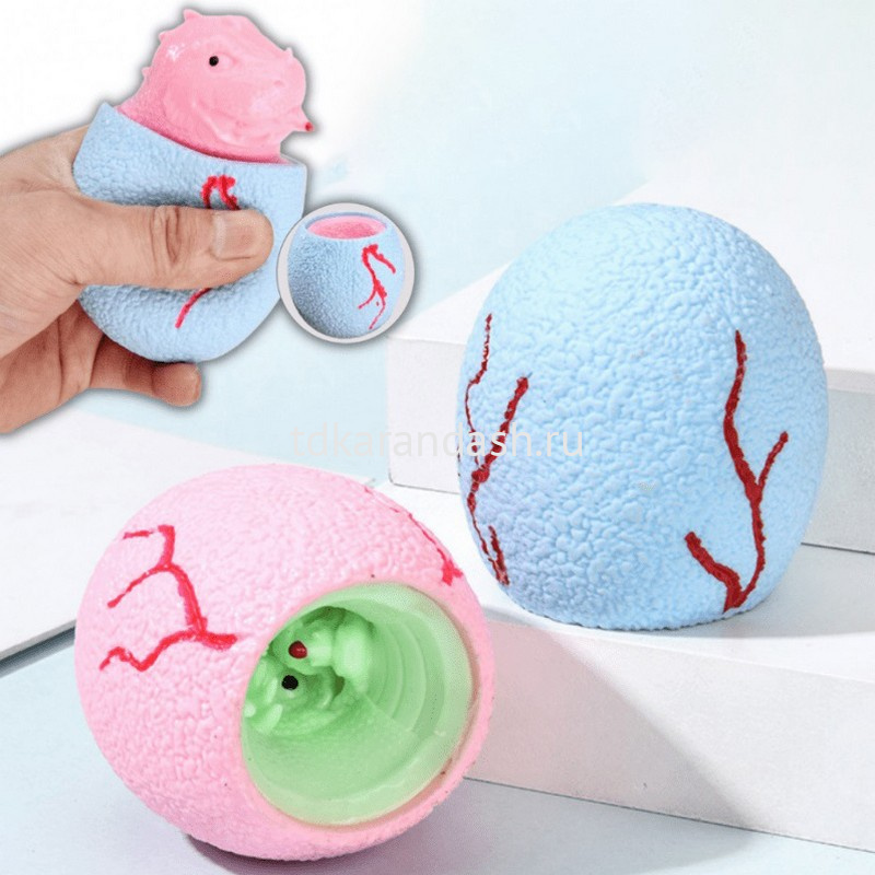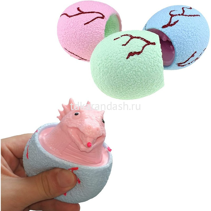 Рифленые яйца с динозаврами спасут Вас от напряжения и грустных мыслей! Яркий антистресс имеет особенность – при сжатии, из яйца выскакивает милое доисторическое существо, которое точно вызовет Вашу улыбку! Увлекательный функционал игрушки не только вас порадует, а также сможет помочь избавиться от тревожных мыслей, снять напряжение и расслабиться!