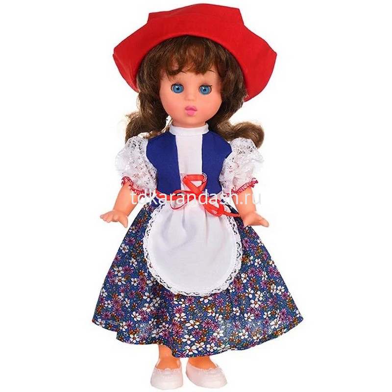 Изделие отличается красочным внешним видом и качественным исполнением. Куколка одета в очаровательное платьице с яркими принтами и кружевами, стильную красную шляпу, оригинальный фартук и миниатюрные туфельки. У игрушечной красавицы выразительные глазки и длинные волосы, из которых девочки смогут создавать стильные прически. С данной куклой дети смогут придумывать массу интересных игровых сюжетов и весело проводить свое свободное время.