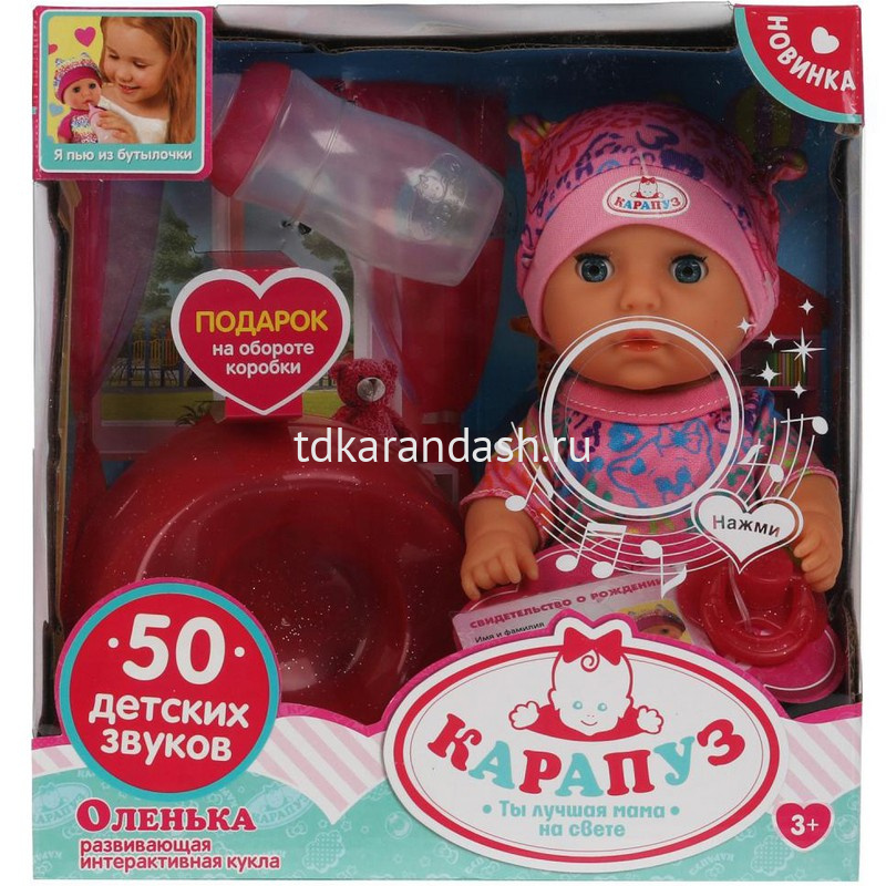 Этот милый пупс, с детально проработанным личиком, обязательно понравится вашей малышке. Оленька одета в яркое боди с принтом и забавную шапочку. Одежда куколки легко надевается и снимается. С Оленькой девочка может играть в самые разные игры, гулять с ней, петь песни, кормить, переодевать, рассказывать сказки и укладывать спать.