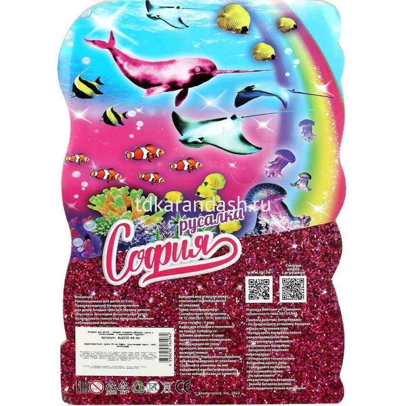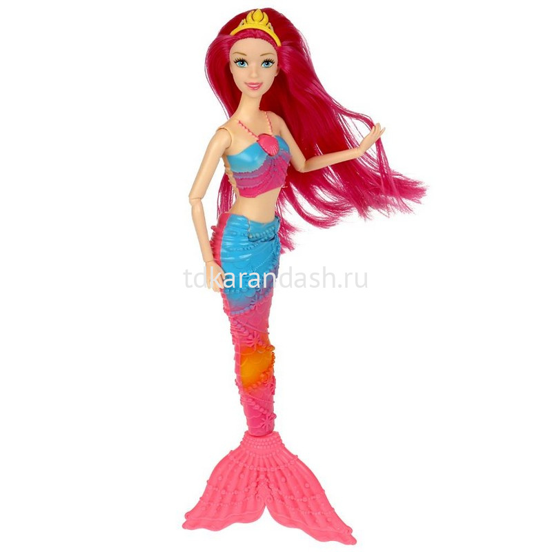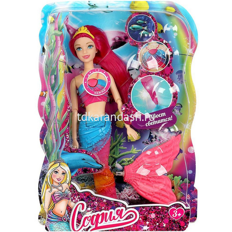 Прекрасная русалка София одета в элегантный сине-розовый топ и, как у всех русалок, у неё есть красивый, с украшениями, хвост. Образ дополняет яркая корона. Кроме того, у Софии есть волшебный амулет, при нажатии на который начинает светиться хвост. С такой куклой девочке будет интересно и весело играть. У Софии длинные красивые волосы, которые хозяйка куклы сможет заплетать в разные причёски. Детально проработанный дизайн игрушки вдохновит девочку на новые игровые сюжеты.