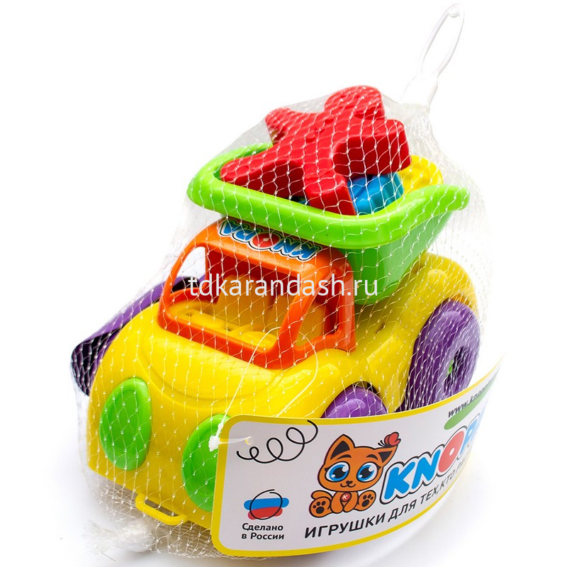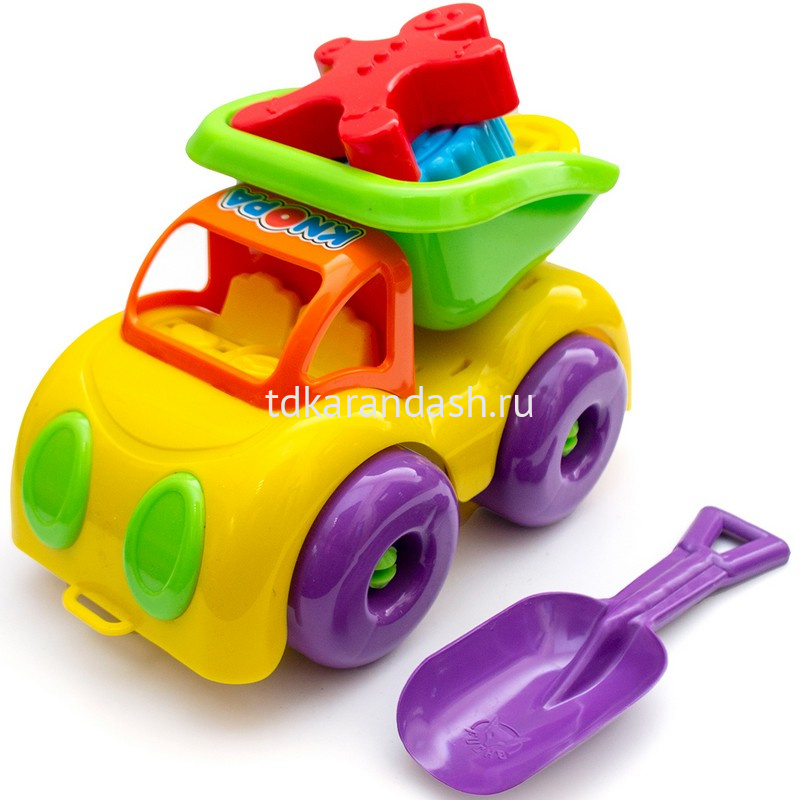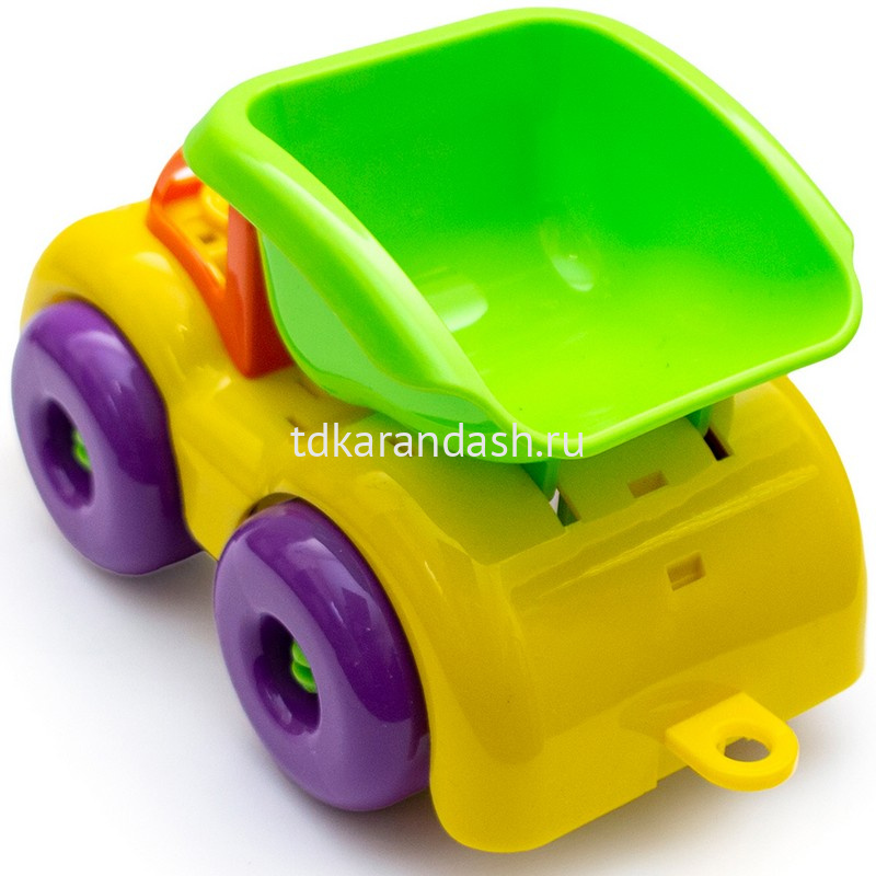 но и машинка-самосвал. Яркие, с глянцевым блеском игрушки - заметны в песке, траве и на детской площадке.