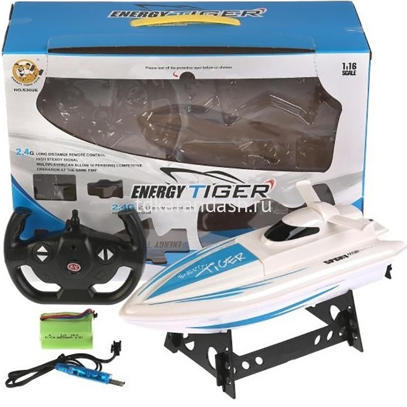 В комплекте катер, пульт управления, USB кабель, детали для сборки подставки, аккумулятор 4.8V.