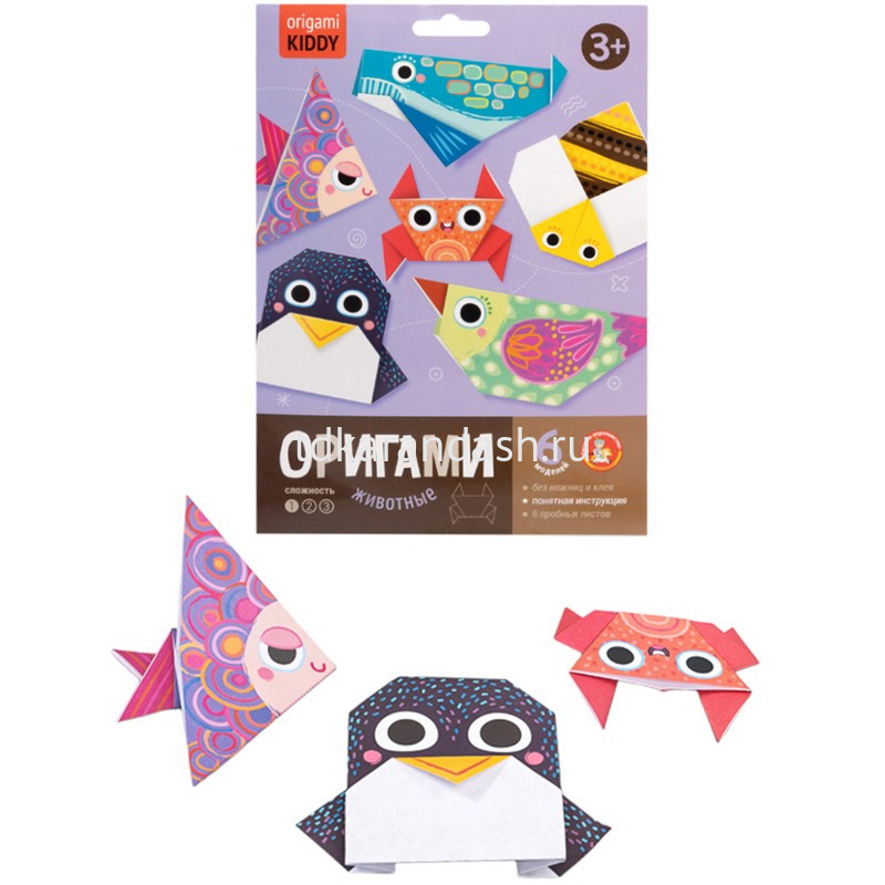 Набор Оригами "Животные" станет отличным досугом для ваших детей! С его помощью можно сделать 6 фигурок животных из цветной бумаги.