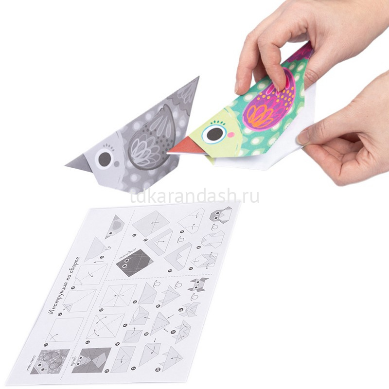 Ваш малыш без труда сможет сложить фигурки, следуя пошаговой инструкции, а для облегчения задачи места сгибов обозначены пунктирной линией.