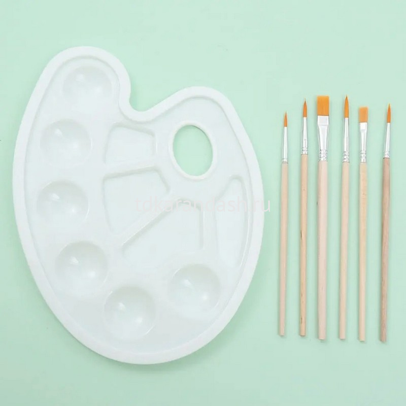 Палитра с 10 лунками, в том числе 6 лунками круглой формы и 4 лунками неправильной формы.