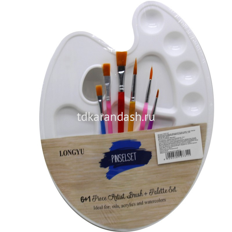 Легкая, удобная пластиковая палитра для рисования необходимый инструмент для юных художников – служит для смешивания красок и для получения новых тонов. Легко моется, имеет много отделений для смешивания, благодаря овальному вырезу удобно держится в руке. Палитра изготовлена из пластика, многоразового и прочного. В комплекте с палитрой идет набор из 6 кисточек для рисования. Подходят для рисования гуашью, акварельными красками. Набор содержит все необходимые для рисования размеры кисточек: от точных и тонких линий до заливки фона! Хорошо ложатся в детские руки. 6 художественных кистей и 1 палитра для рисования.