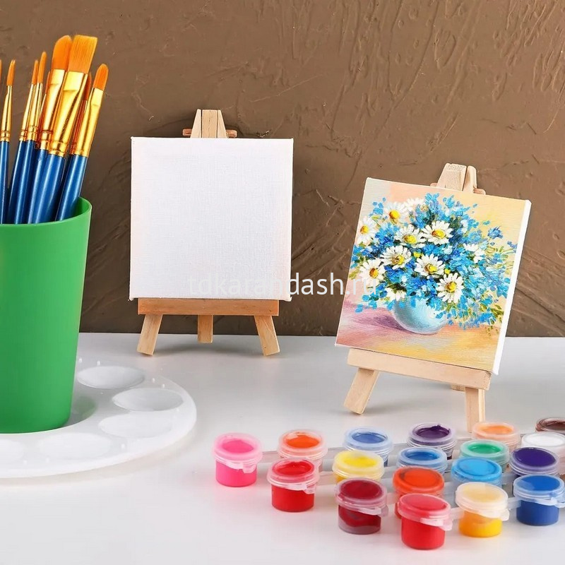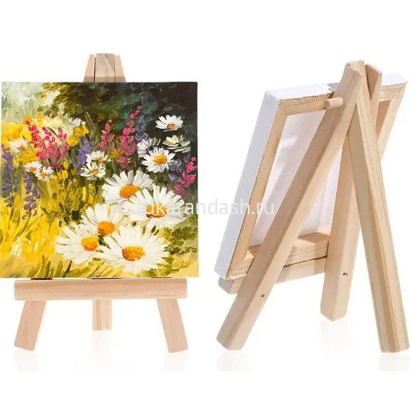 Хлопковое полотно хорошо сохраняет естественный тон и блеск пигмента. Рама мольберта изготовлена из натуральной сосны с гладкой поверхностью, легко монтируется и складывается для удобства транспортировки и хранения.