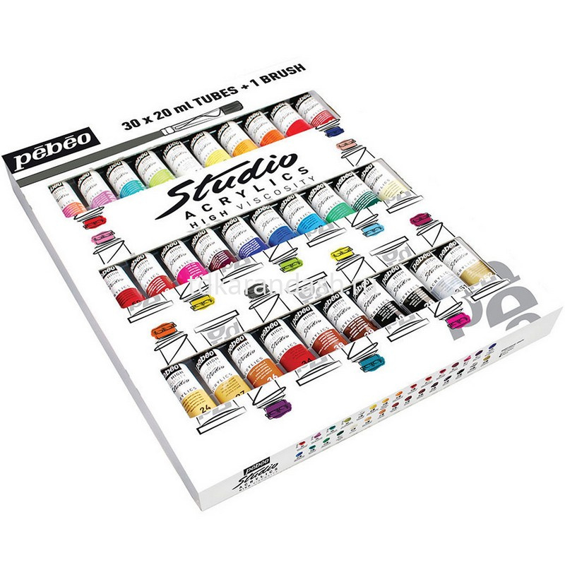 Цвета в наборе: 11 Белила титановые, 48 Желтый основной, 30 Бирюзовый, 32 Оранжевый кадмий , 33 Красный кадмий , 20 Квинакридон алый, 50 Маджента основная, 18 Карминовый нафтол, 55 Розовый азо, 21 Фиолетовый восточный, 15 Ультрамарин темный, 49 Циан основной, 43 Кадмий зеленый , 42 Изумрудный фталоцианин, 65 Слоновая кость, 24 Желтый Неополитанский , 27 Охра желтая, 36 Сиена натуральная, 34 Охра красная, 38 Сиена жженая, 29 Умбра жженая, 40 Серый Пейна, 26 Марс чёрный, 354 Красно-синий иридисцентный, 356 Фиолетово-голубой иридисцентный, 358 Зелено-синий иридисцентный, 359 Зелено-желтый иридисцентный, 351 Серебро иридисцентное, 352 Золото иридисцентое.