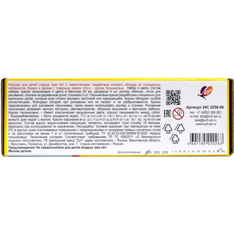 Состав набора: 4 герметичные баночки с краской ёмкостью 40 мл. (жёлтый,синий, красный, зелёный), роллер "Волна" - 1 шт., спонжик на деревянной ручке, лоток для рисования, раскраски - 4 шт. В подарок - спонжики в ассортименте - 3 шт.