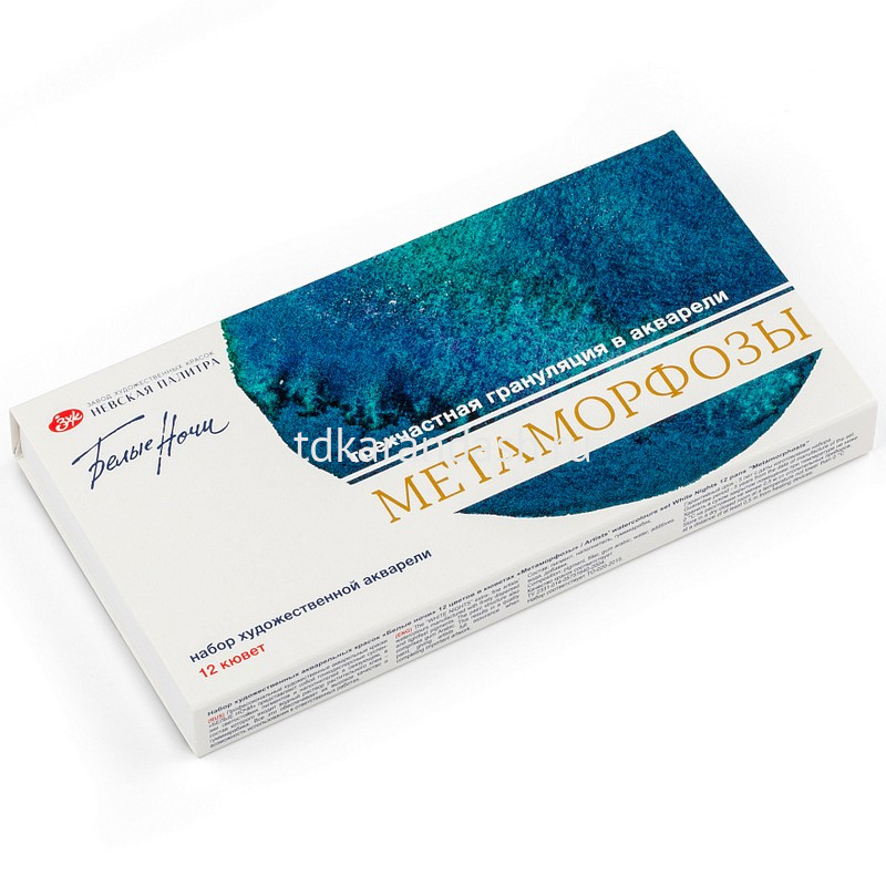 Профессиональные художественные акварельные краски "Белые ночи" представляют собой тонкодисперсные суспензии пигментов и наполнителей в связующем, в состав, которого входит водный раствор растительного клея – гуммиарабика.