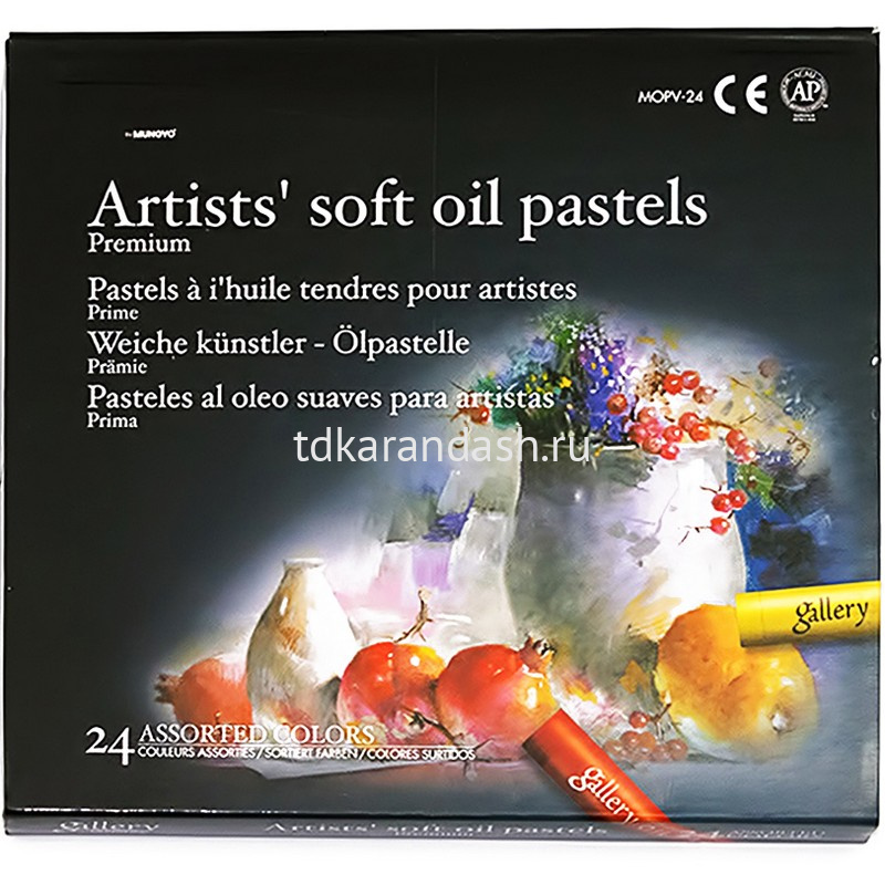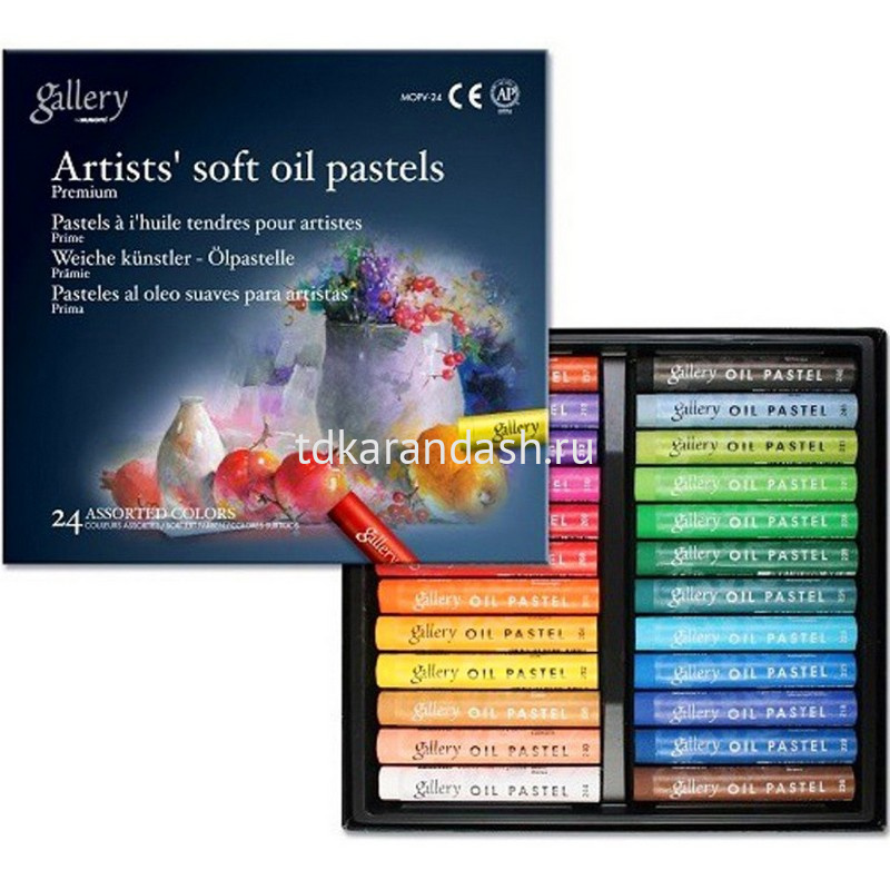 В набор входят 24 пастельных мелка "Artists' Soft Oil" серии GALLERY от компании "Mungyo" (Корея). Это художественные масляные мягкие пастельные мелки, круглые, в манжетах. Изготовлены из проверенного безопасного, очень качественного сырья. Пастель прекрасно ложится и очень мягко растушёвывается, а также позволяет, при необходимости, имитировать мазки масляной краски. Подходит для работы на бумаге, холсте, картоне, дереве и других поверхностях. Размер мелка - ок. 11мм в диаметре, длина - ок. 70мм.