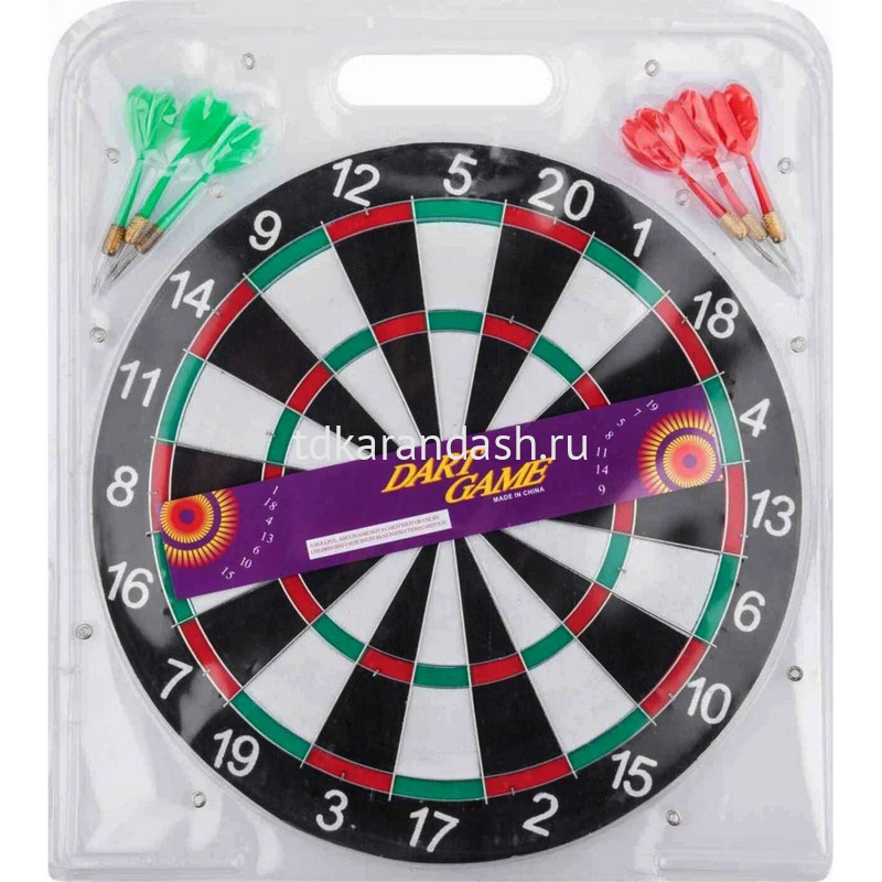 Диаметр мишени - 29см, в комплекте 6 дротиков длиной 11,5 см.