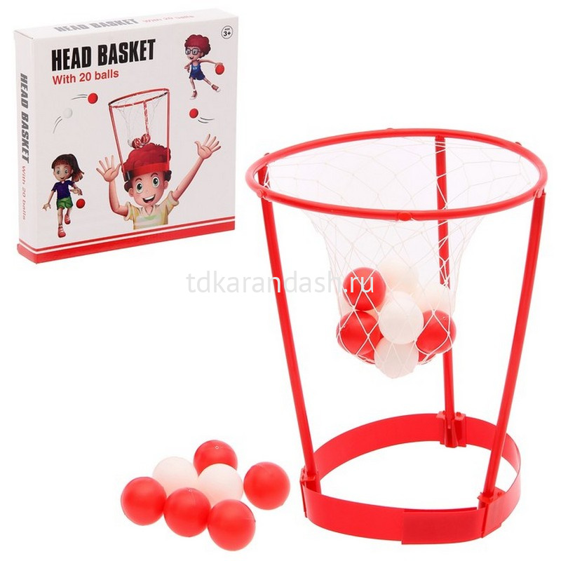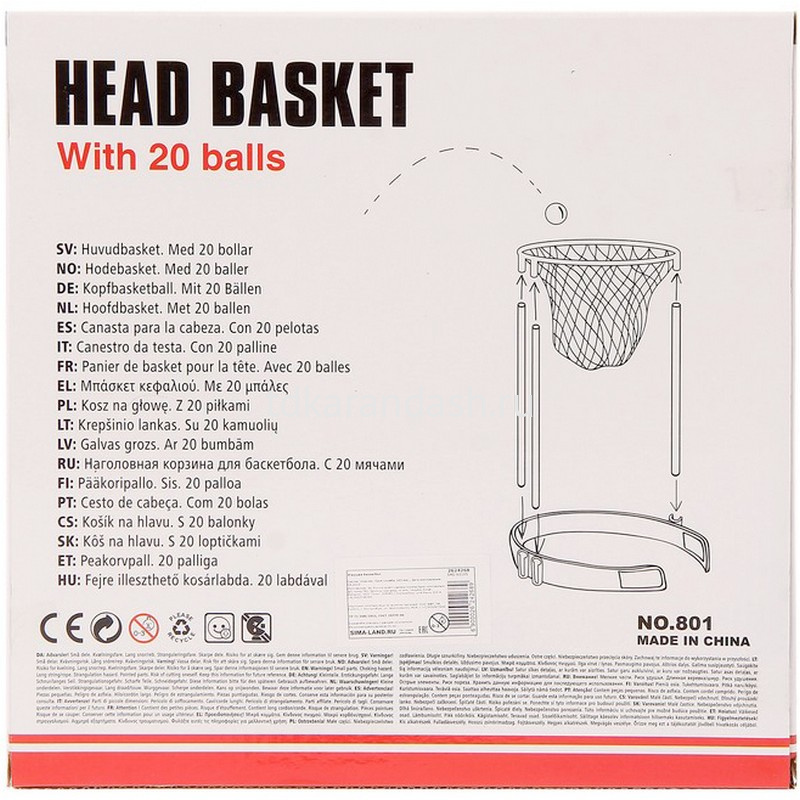 Набор для игры в баскетбол включает кольцо, 3 стойки, сетку, фиксатор на голову и 20 мячей. Игра рассчитана на 2-х и большее количество игроков. Фиксатор на голову регулируется по объёму.
