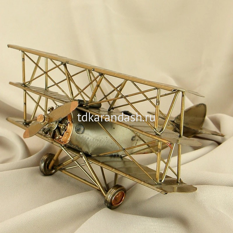 Идея триплана (самолёта с тремя крыльями) получила развитие в 1916–1917 годах. Английский Sopwith Triplane стал одним из первых удачных истребителей такого типа: три крыла давали отличную вертикальную манёвренность и обзор. Ответом Германии стал Fokker Dr.I (1917), прославленный "Красным бароном" Манфредом фон Рихтгофеном. Хотя повышенное лобовое сопротивление вскоре уступило место более быстрым бипланам и монопланам, трипланы навсегда остались символом рыцарских воздушных боёв той эпохи. Наша декоративная модель стилизована под этот исторический образ.